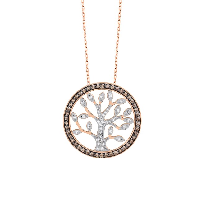 Arbre de Vie Collier or rose, diamants et diamants bruns