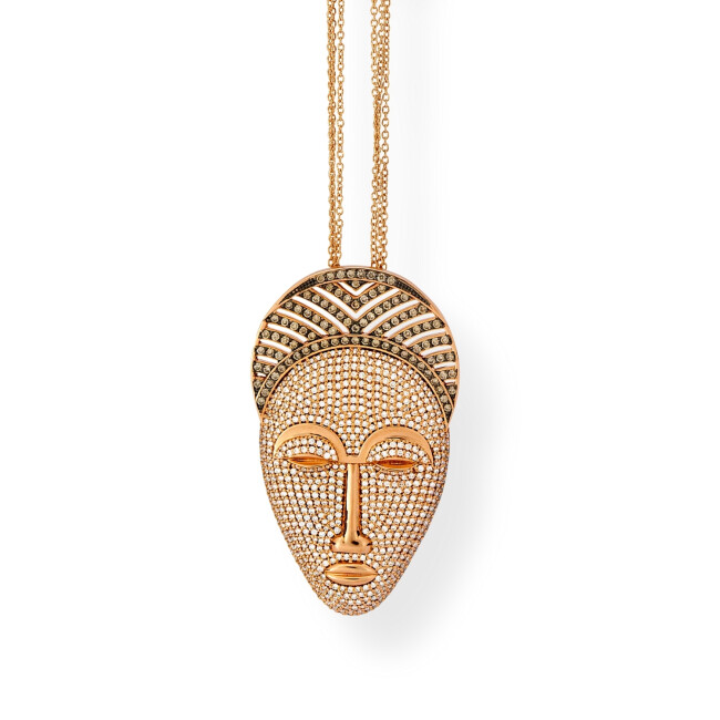Ashanti Collier Ashanti XL en or rose pavé diamants bruns, diamants blancs et émeraudes