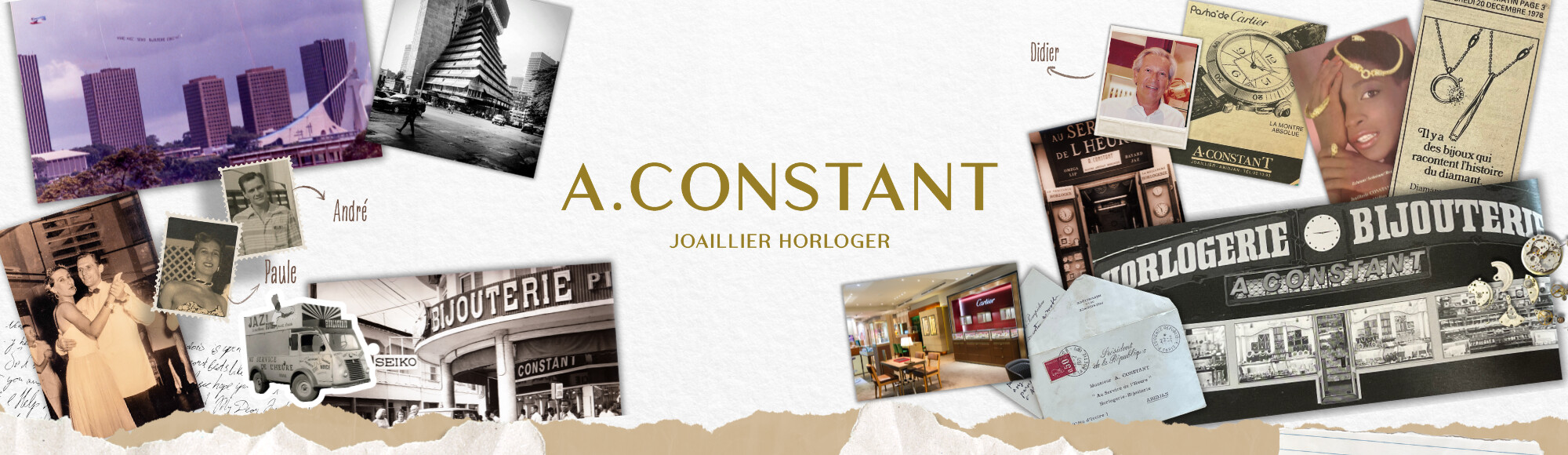 La Maison A.CONSTANT est née à Abidjan au début des années 1950 lorsqu'André et Paule Constant ouvrent leur premier atelier "Au Service de l'Heure".