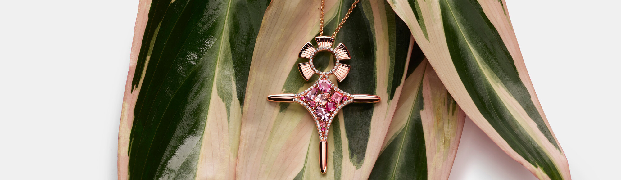 Agadez Collier Agadez en or rose, améthystes lavandes, morganites, saphirs roses, tourmalines rose, rubis et diamants
