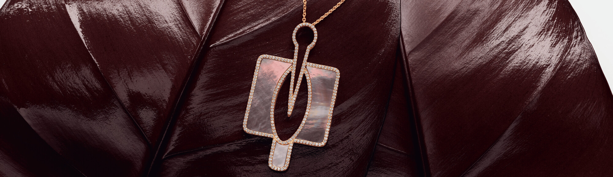 Calao Collier Calao en or rose, diamants et nacre blanche et grise