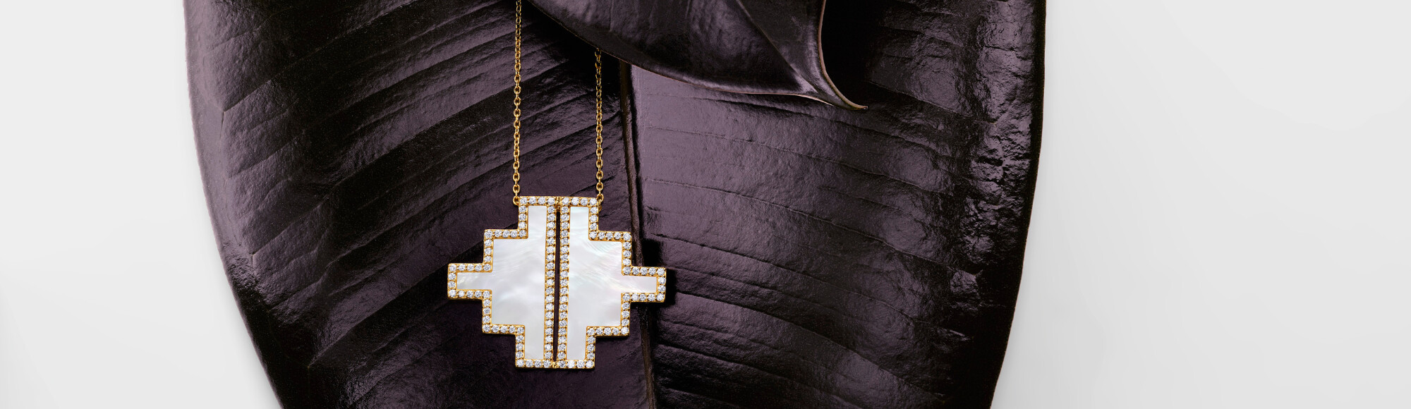 Kita Collier Kita en or jaune, diamants et nacre blanche