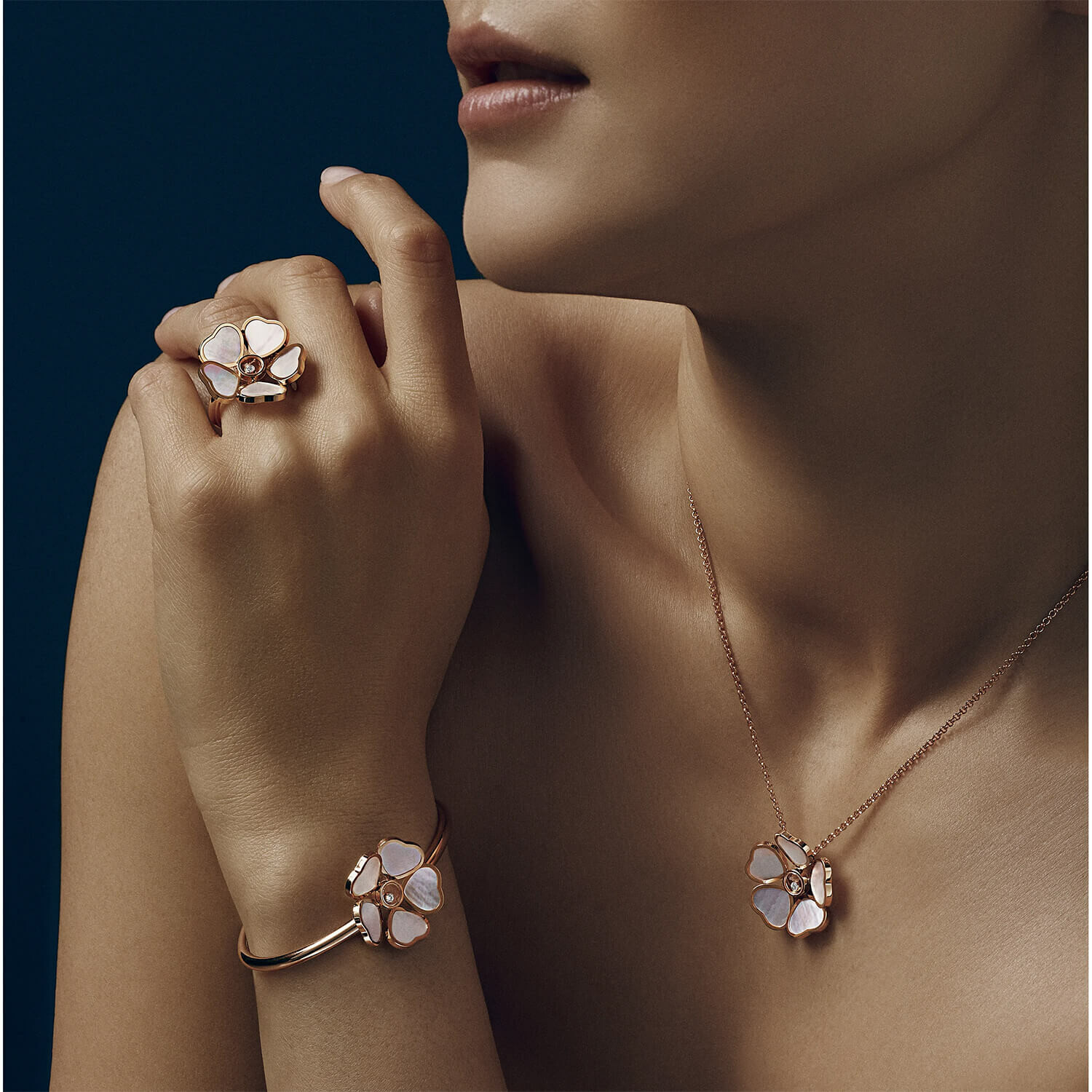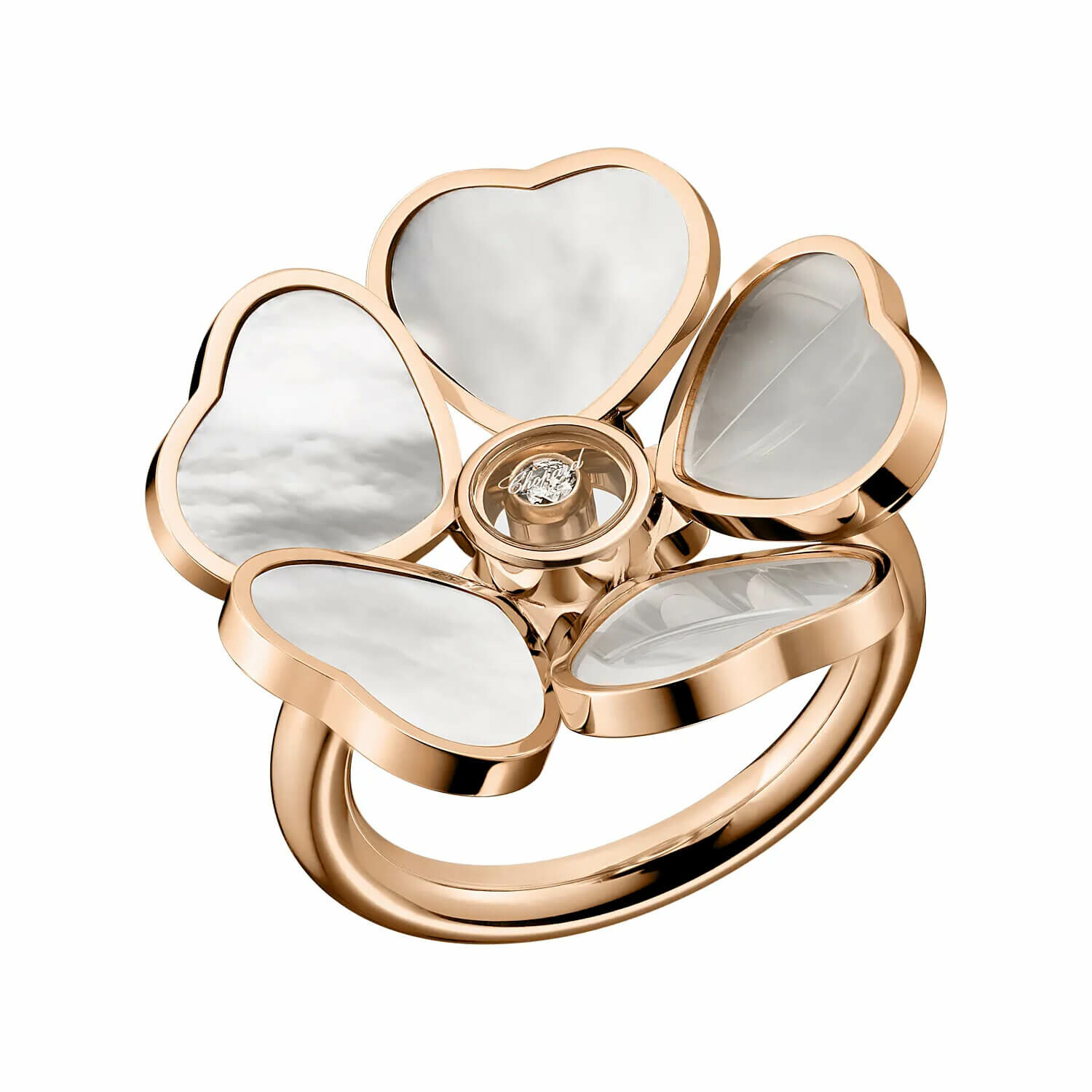 Bague Chopard Happy Hearts Flowers en or rose, nacre et diamant, taille 54