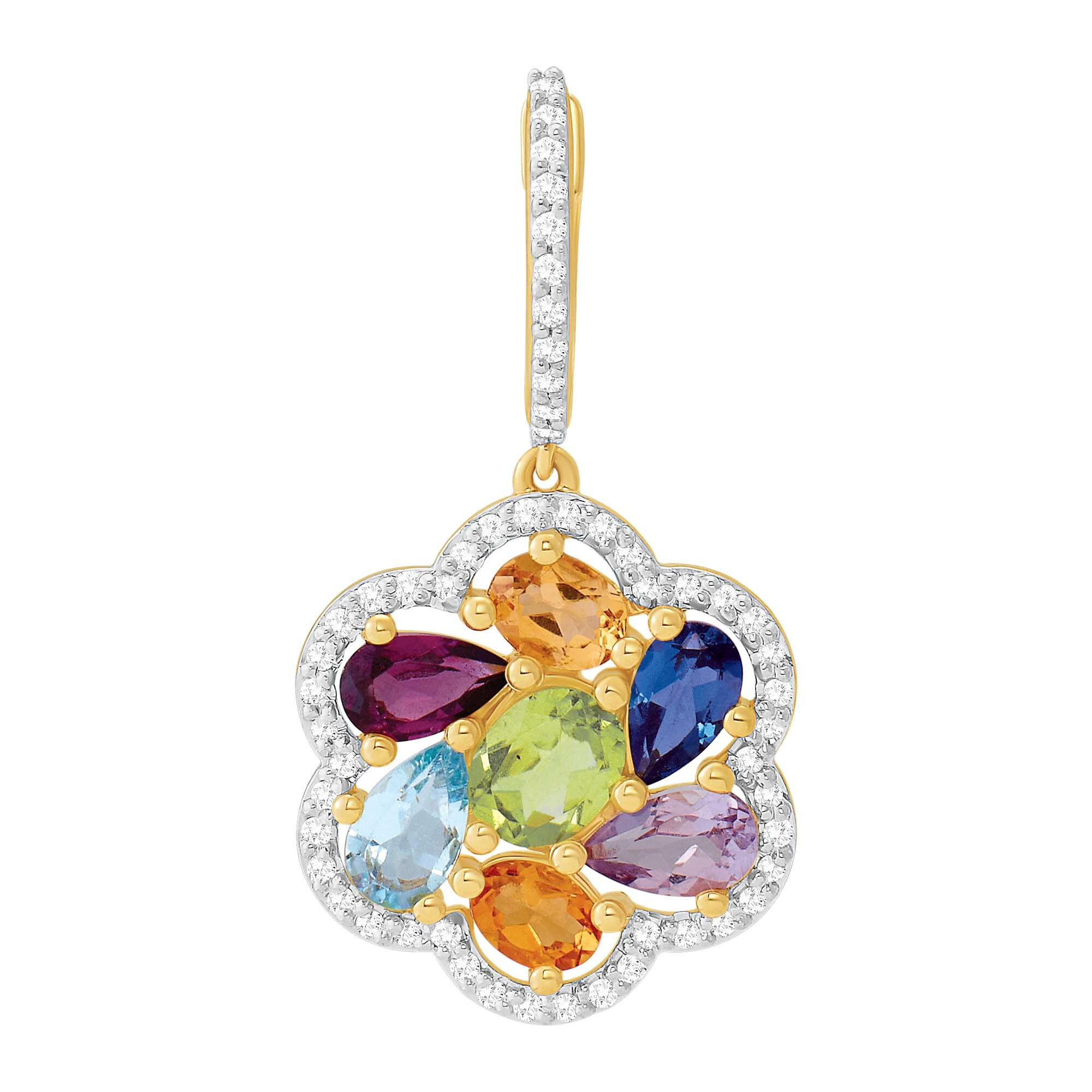 Boucles d'oreilles or jaune, diamants et pierres multicolores