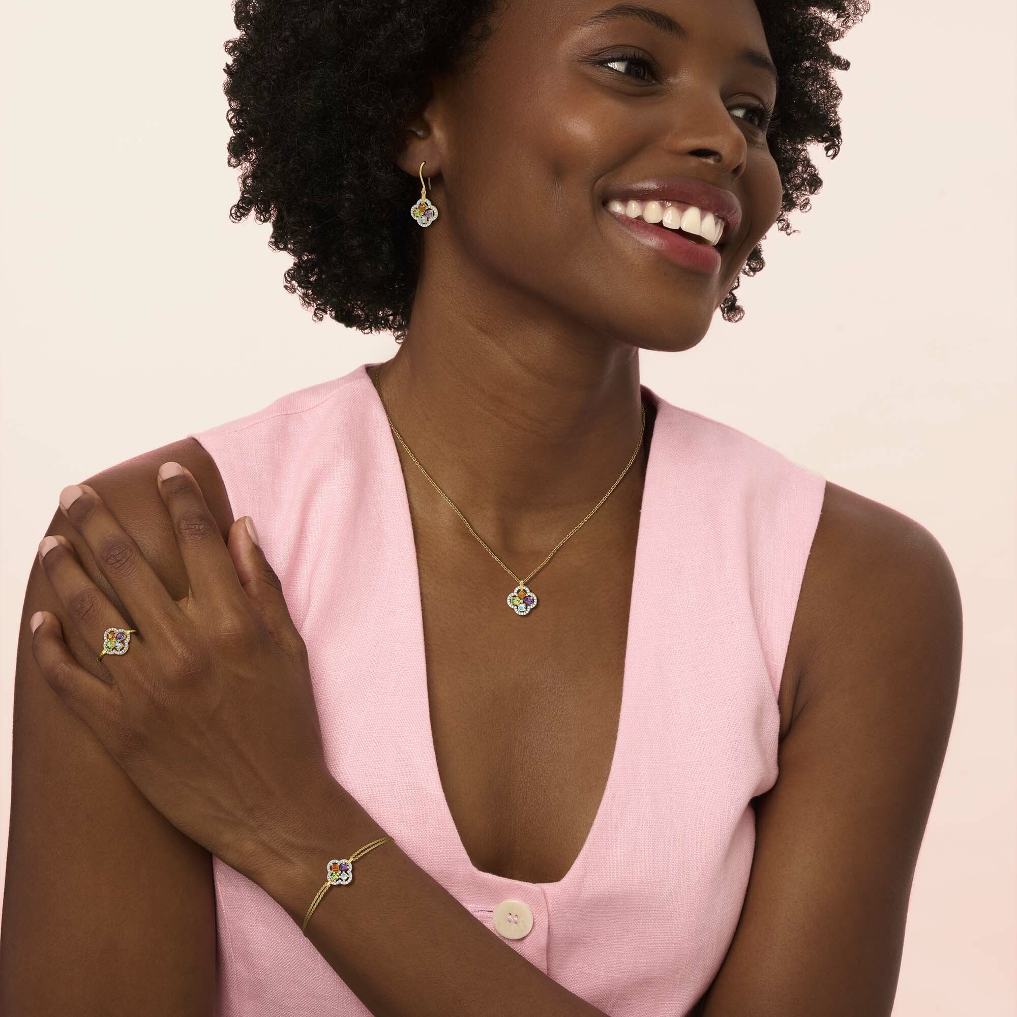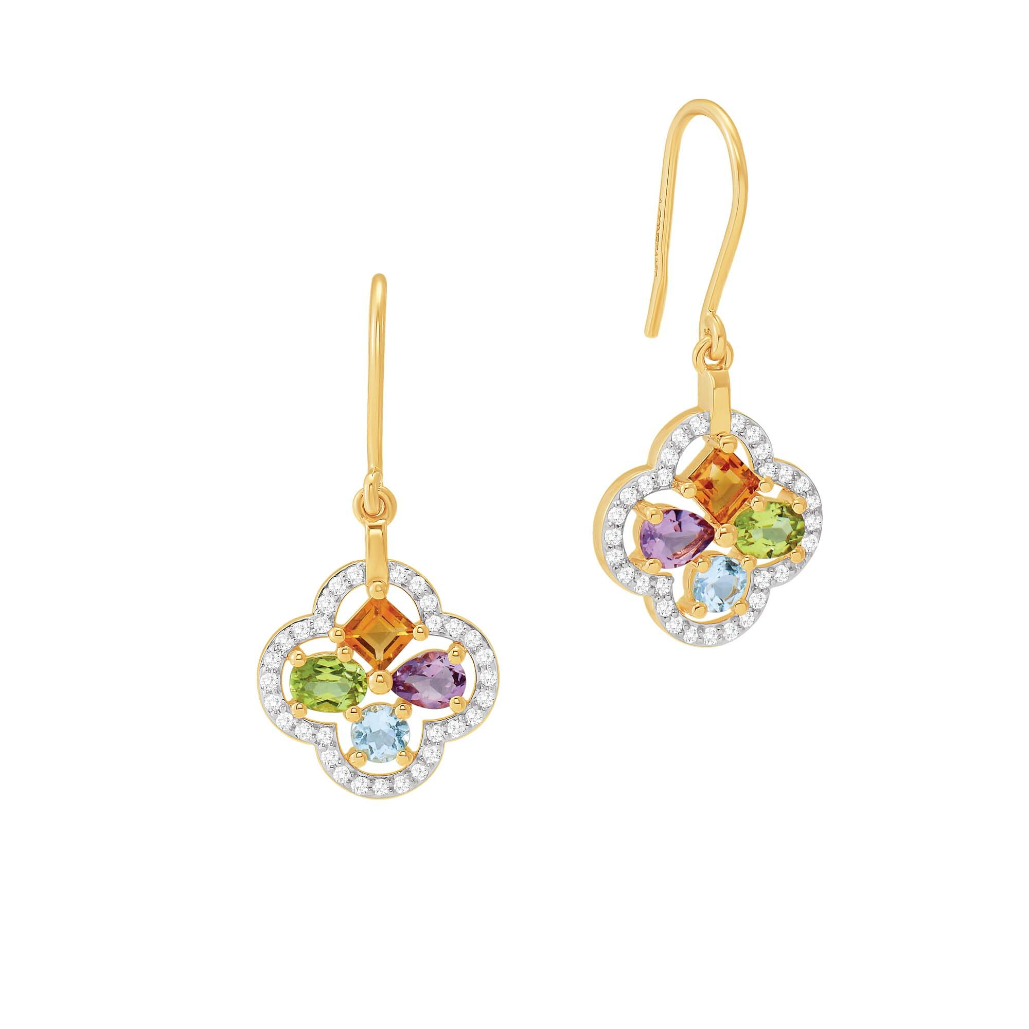 Boucles d'oreilles or jaune, diamants et pierres multicolores