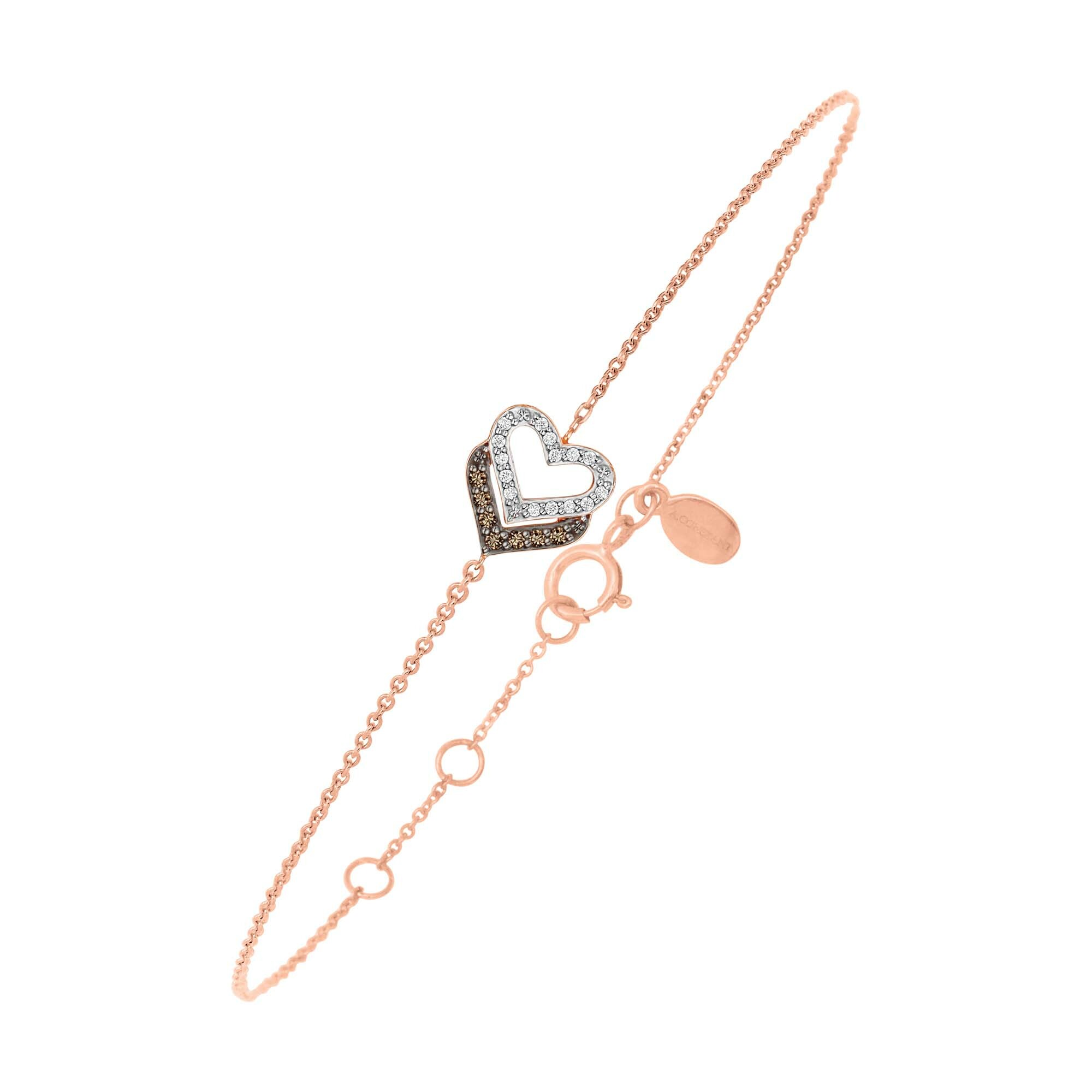 Ce bracelet en or rose 18 carats séduit par la finesse de son motif cœur serti de diamants blancs et bruns. Son éclat subtil sublime le poignet avec légèreté. Confortable et discret, il accompagne chaque geste d’une touche d’éclat.