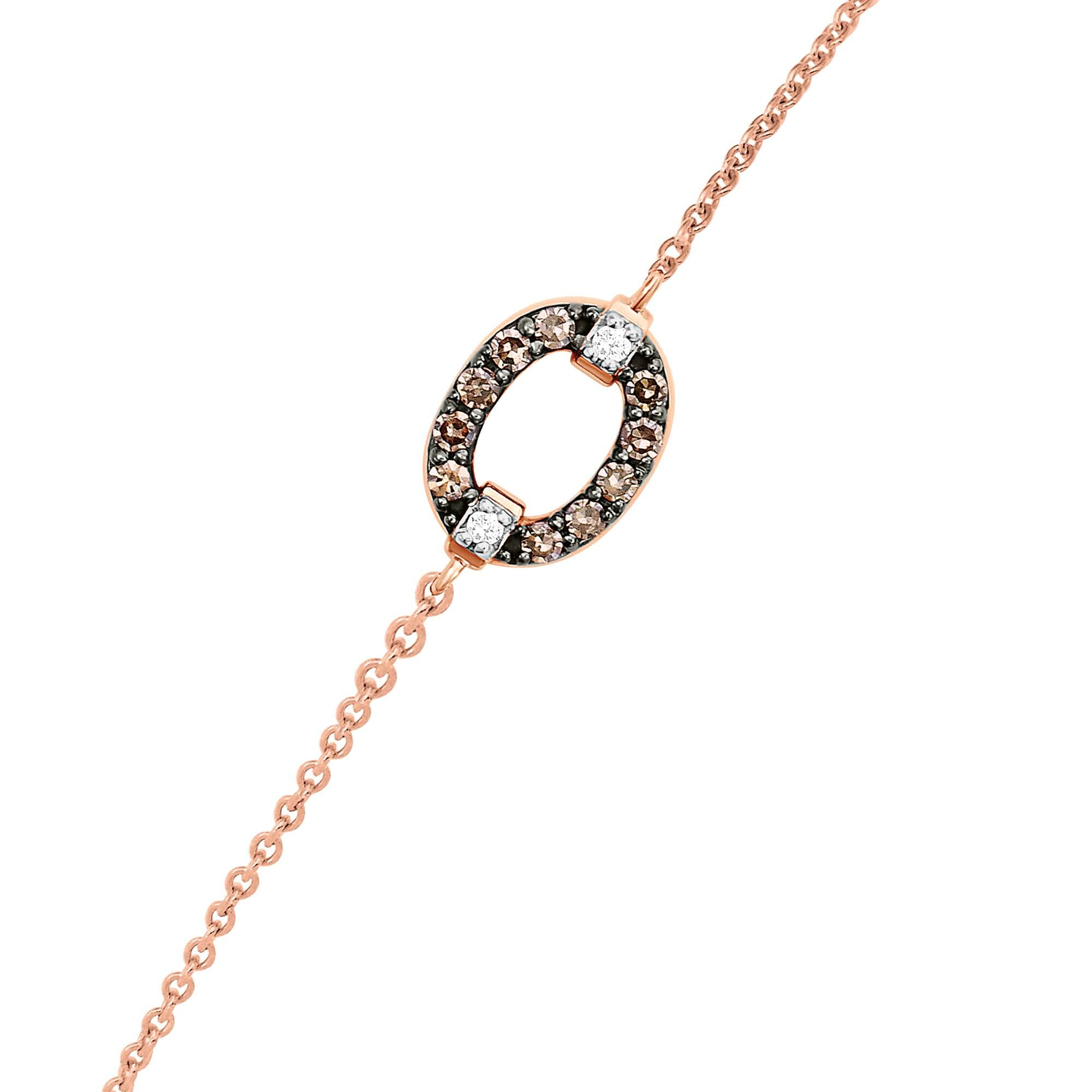 Ce bracelet en or rose 18 carats dévoile un motif pavé de diamants blancs et bruns. Fin et délicat, il habille le poignet d’un éclat subtil. Idéal seul ou associé à d’autres créations, il incarne une élégance naturelle.