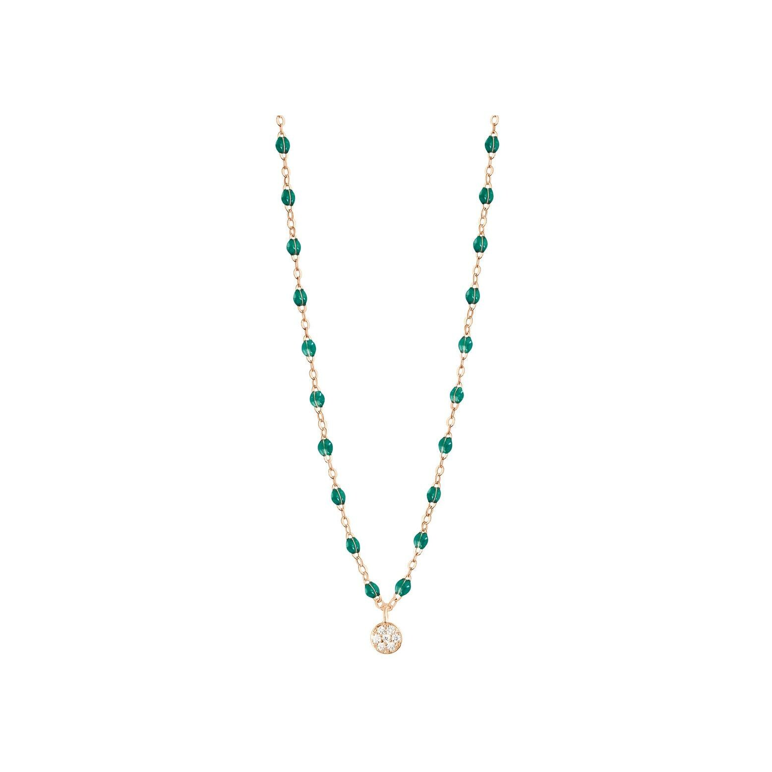 Collier Gigi Clozeau Puce en or rose, résine vert émeraude et diamants, taille 42cm