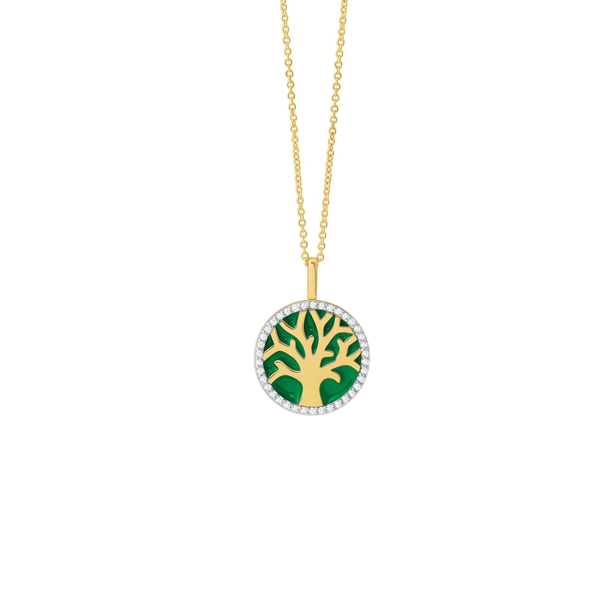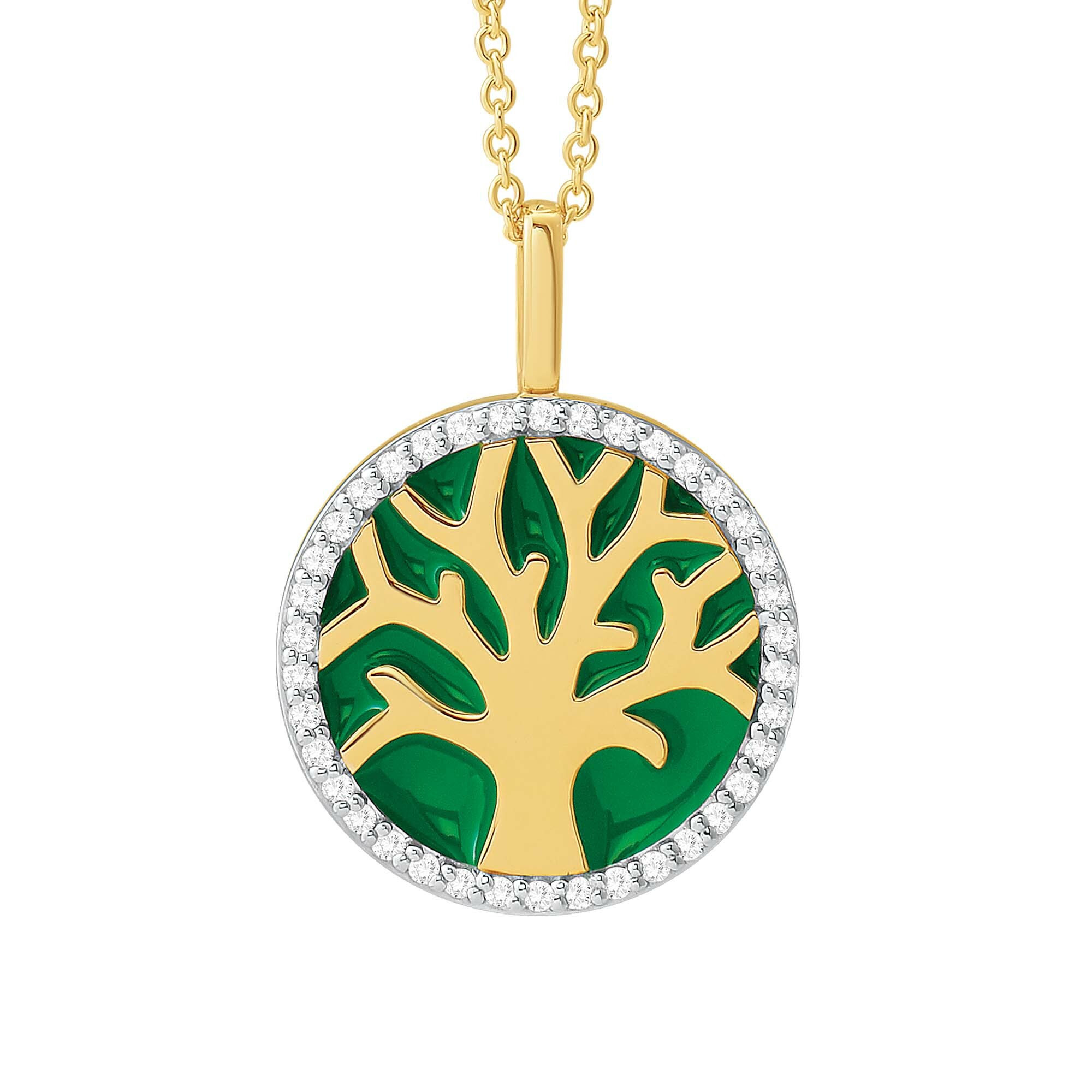 Découvrez une création vibrante de la collection Arbre de Vie. Ce collier en or jaune 18 carats, sublimé par des diamants scintillants et une laque verte éclatante, célèbre la nature et le renouveau. Un bijou vivant qui rayonne de force et d’élégance naturelle.