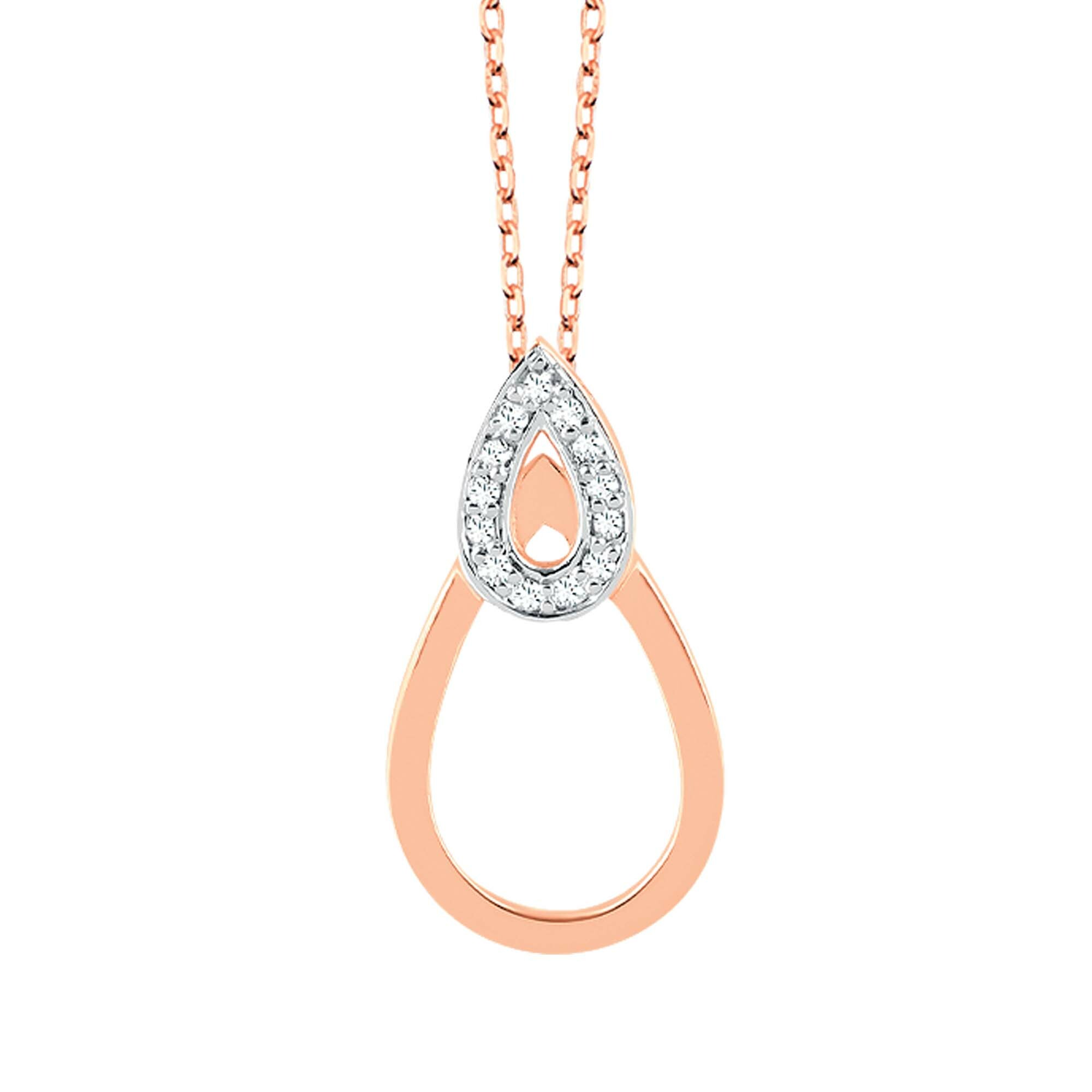 Le collier de la collection Ors et Diamants sublime la pureté d’une goutte en or rose 18 carats rehaussée de diamants étincelants. Son design raffiné capte la lumière avec grâce, apportant éclat et modernité à toutes vos tenues.